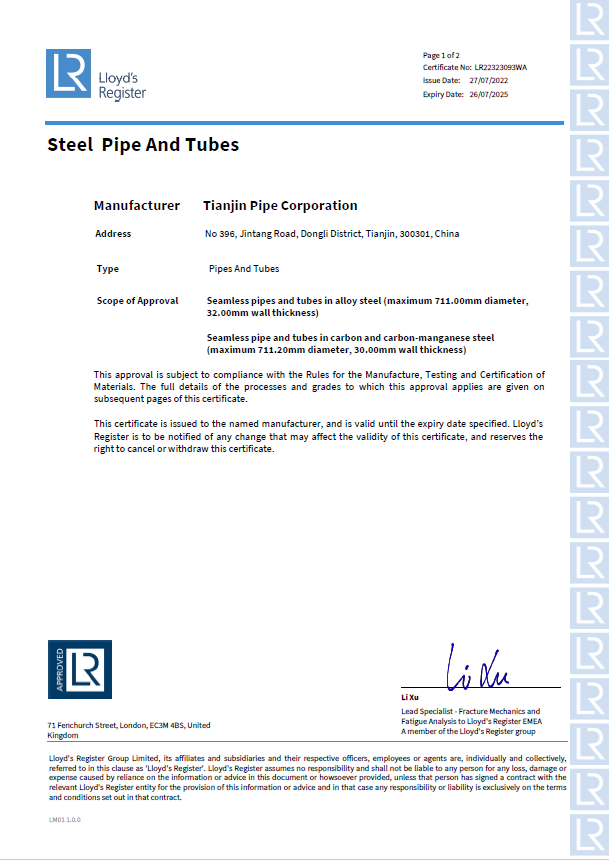 LR劳氏船级社证书