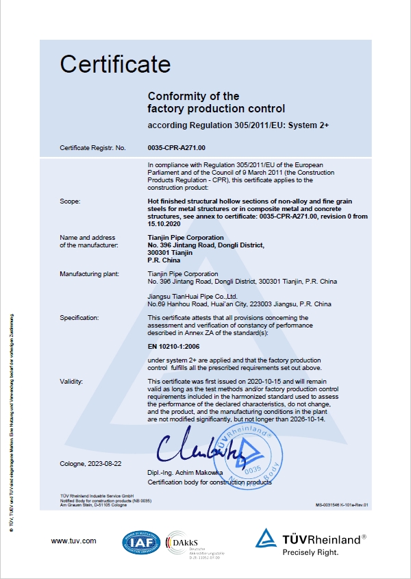 13 CPR欧洲建筑产品指令证书 德国莱茵TüV