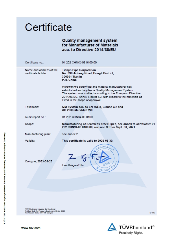 14 PED欧洲承压设备指令证书 德国莱茵TüV