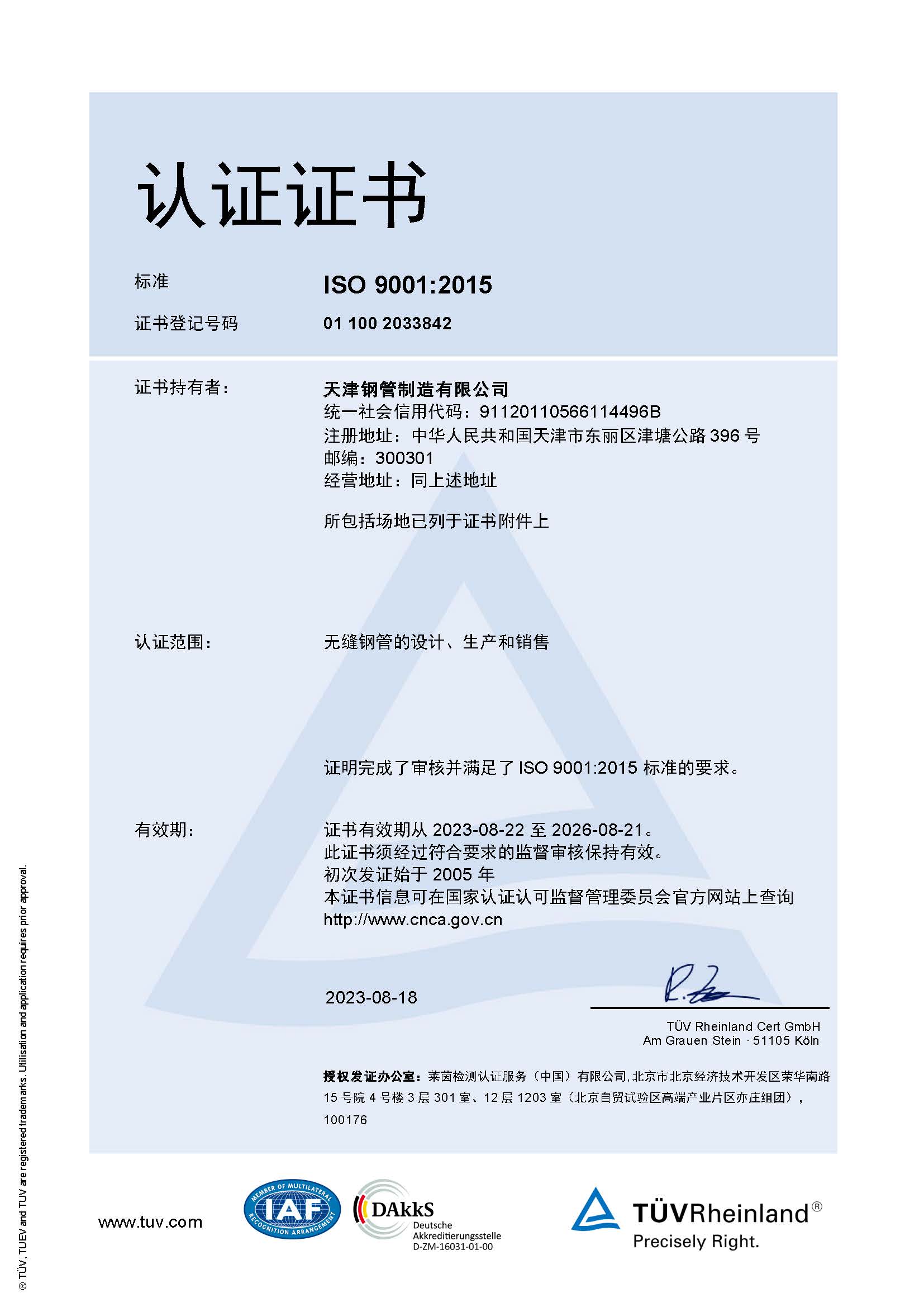 1 ISO9001质量管理体系证书 德国莱茵TüV