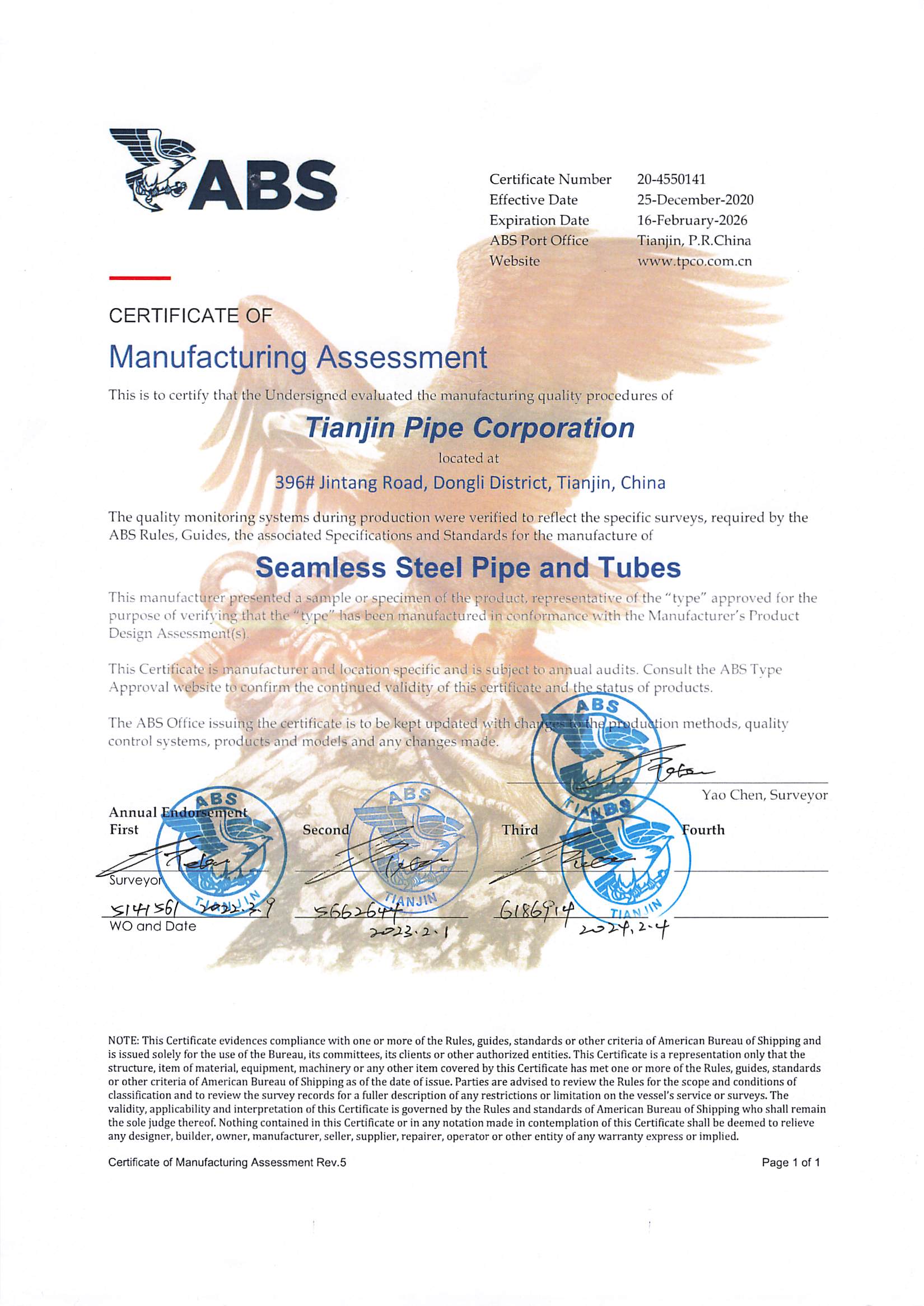 8 ABS美国船级社制造许可证书 美国船级社