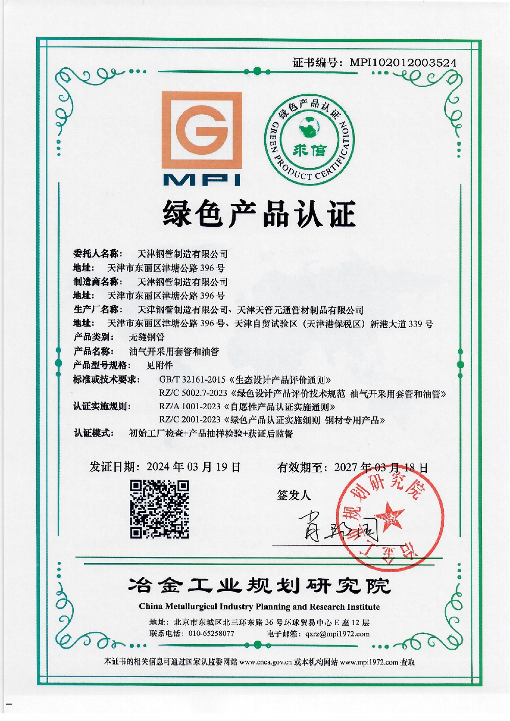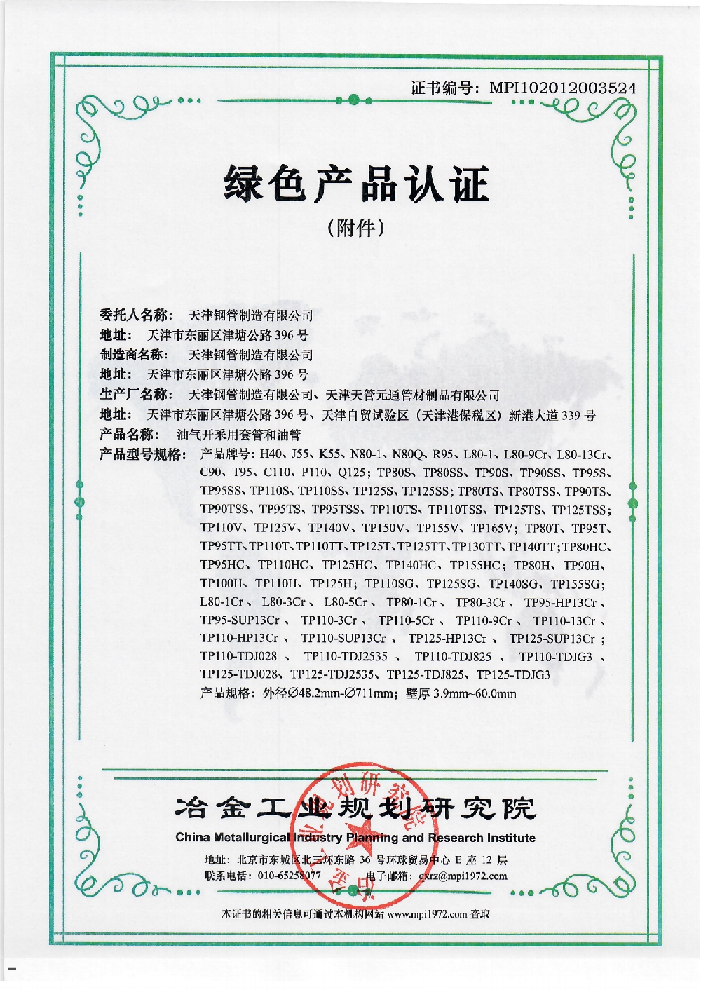 15 绿色产品证书 冶金工业规划研究院